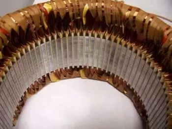 Dans les machines à courant alternatif, le stator se présente généralement sous la forme d'un tube cylindrique d'une certaine épaisseur de paroi. Les rainures où sont logées les bobines de stator sont formées de couronnes empilées de tôle magnétique avec des dents dans leur cercle intérieur.